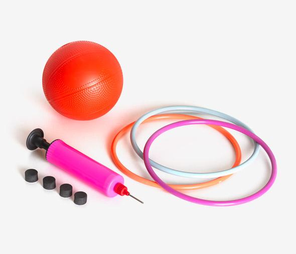 Доброго дня, так в комплект входить гумовий м'яч, насос та кільця для гри. За додатковою консультацією звертайтесь до менеджера у чаті, або за телефоном на сайті.