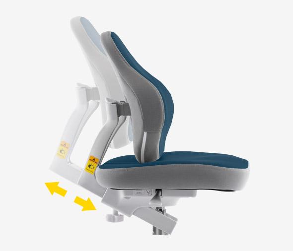 Key support elements include adapted seat height/depth and a contoured backrest. Additional comfort and the correct position during lessons are ensured by the adjustable foot platform
