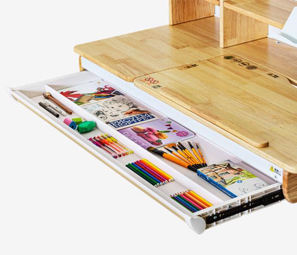 A roomy pull-out organizer with dividers is placed under the tabletop. All school items will be sorted by purpose.