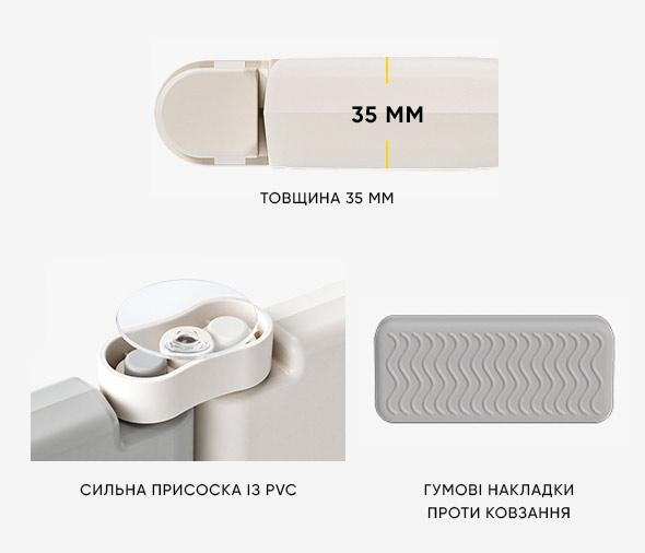 Rubber pads and suction cups allow the playpen to be securely fixed on any flat surface and prevent the structure from tipping over