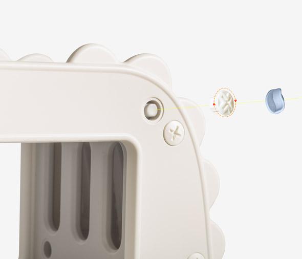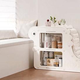 Decorative elements in the shape of a little dinosaur make the rack interesting for children. The design creates a positive atmosphere and complements the nursery interior