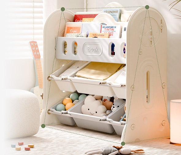 Optimize the sorting of toys and belongings. A set of spacious, removable containers of various volumes (6L, 13L) provides flexible and accessible storage. The containers are easily removed, simplifying cleanup