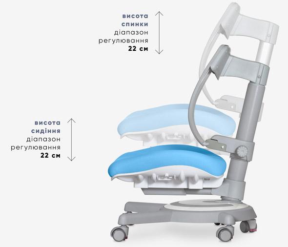 Окреме налаштування сидіння й спинки дозволяє точно підібрати висоту під зріст дитини