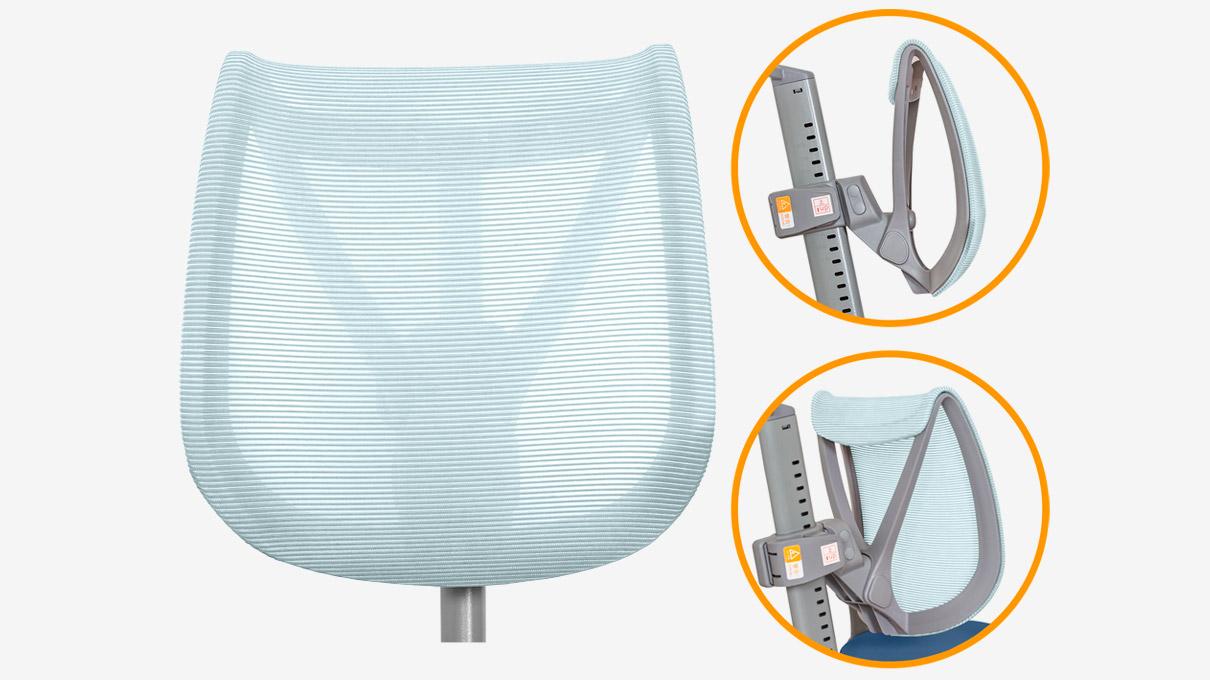 Спинка крісла виготовлена з міцної нейлонової сітки. Жорстка структура спинки сприяє правильному формуванню постави, а повітропроникна поверхня забезпечує хорошу циркуляцію повітря в спекотні літні дні.