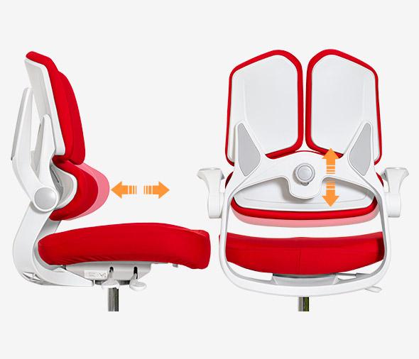 Крісло має додаткову підтримку попереку з можливістю регулювання висоти та глибини положення. Наявність регулювань дозволить максимально точно підібрати налаштування під параметри дитини та зменшить навантаження на нижній відділ хребта.