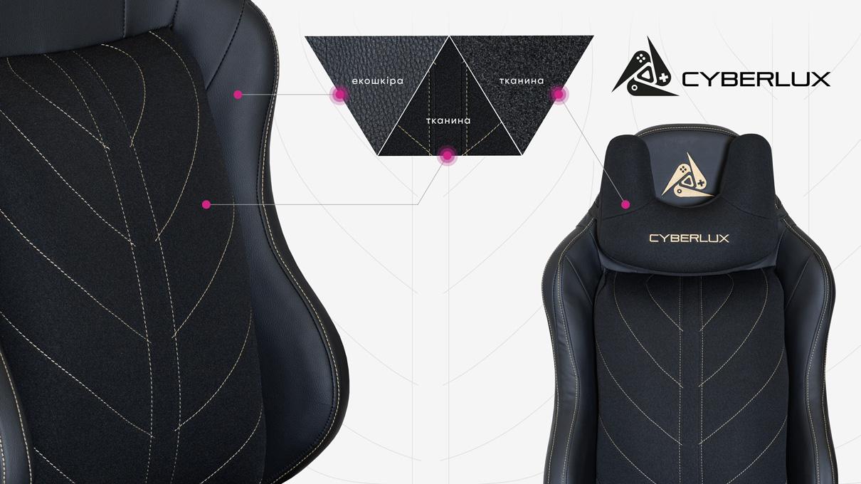 Чорна тканина з екошкірою в поєднанні зі стильними золотистими вставками робить крісло максимально солідним і агресивно стильним. Чіткі лінії та продуманий дизайн додають вайбу преміум-класу — саме те для справжнього геймера