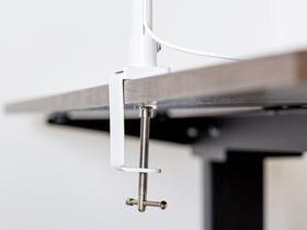 Світлодіодна лампа тримається на стільниці товщиною до 45 мм і фіксується завдяки струбцині.
