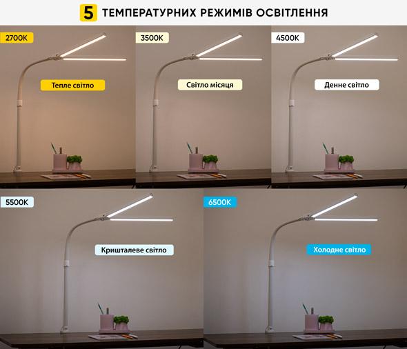 Лампа має п'ять режими освітлення. Правильно підібраний режим освітлення покращить продуктивність і вбереже очі дитини від зайвого навантаження.