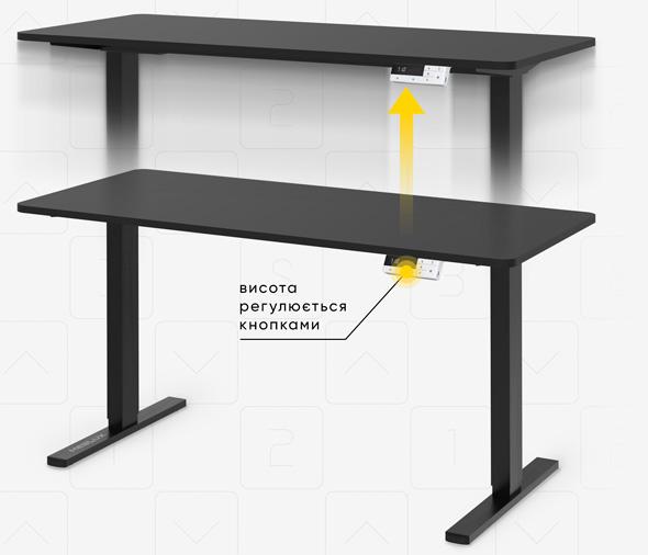 Електричне регулювання висоти дозволяє швидко, плавно та безшумно змінювати положення столу одним натисканням кнопки
