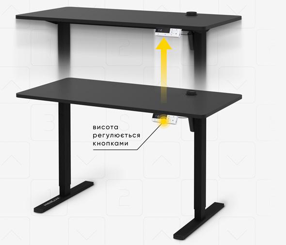 Завдяки електричному механізму висоту столу можна змінювати легко, швидко та без шуму, просто натиснувши кнопку
