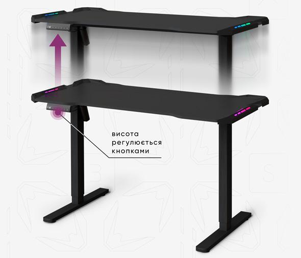 Чіткі геометричні контури, унікальний дизайн стільниці столу у поєднанні з якісними матеріалами утворюють ідеальний варіант для справжнього поціновувача геймерського, сучасного дизайну