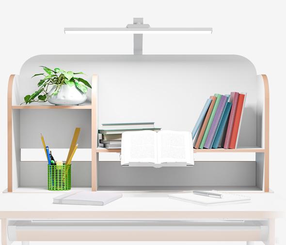 Многоярусная надстройка создает дополнительное пространство для хранения учебников, гаджетов и принадлежностей, поддерживая порядок и освобождая основную столешницу