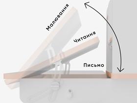 Благодаря регулировке наклона столешницы от 0° до 30° ребенок может работать в удобном положении. Это снижает напряжение в шее и в глазах