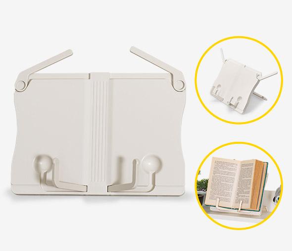 Переносная подставка для книги с регулируемым углом наклона отлично подходит для занятий. Сделанная из безопасного пластика может размещаться на любом комфортном и безопасном расстоянии глаз ребенка.