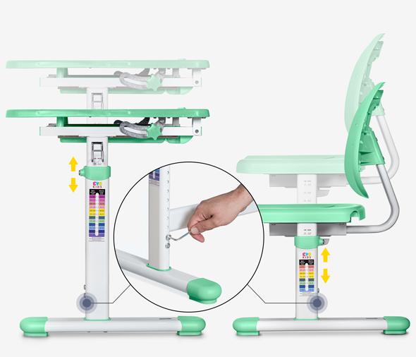 Благодаря регулировке глубины сиденья комплект является универсальным решением для детей дошкольного и младшего школьного возраста