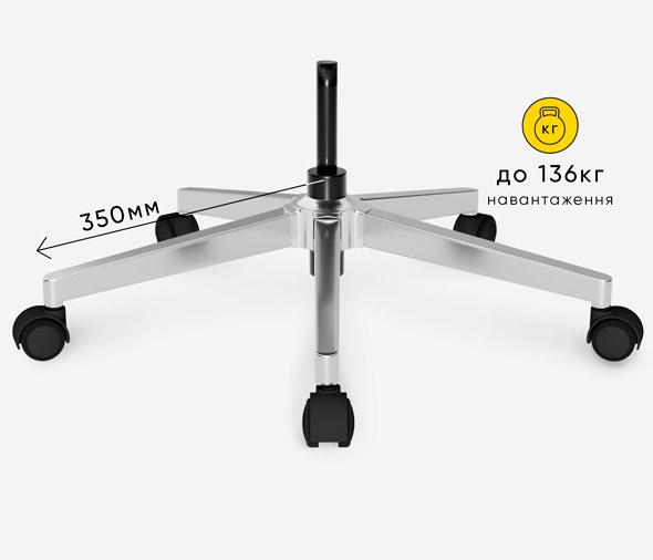 Стальная крестовина повышает устойчивость кресла, обеспечивает надежную опору и долговечность даже при ежедневных нагрузках до 136 кг.