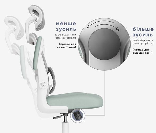 Можливість налаштування рівня опори під індивідуальні потреби користувача забезпечує здорове положення спини та комфорт на весь день.