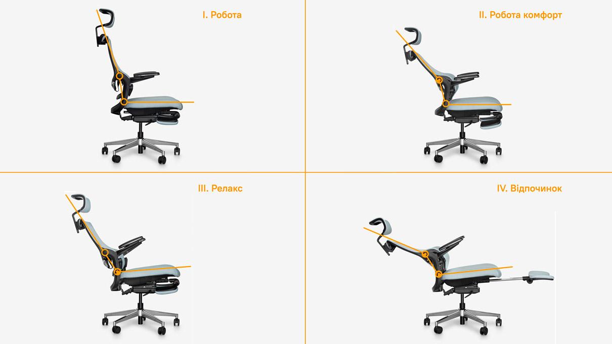 Можливість налаштування рівня опори під індивідуальні потреби користувача забезпечує здорове положення спини та комфорт на весь день.