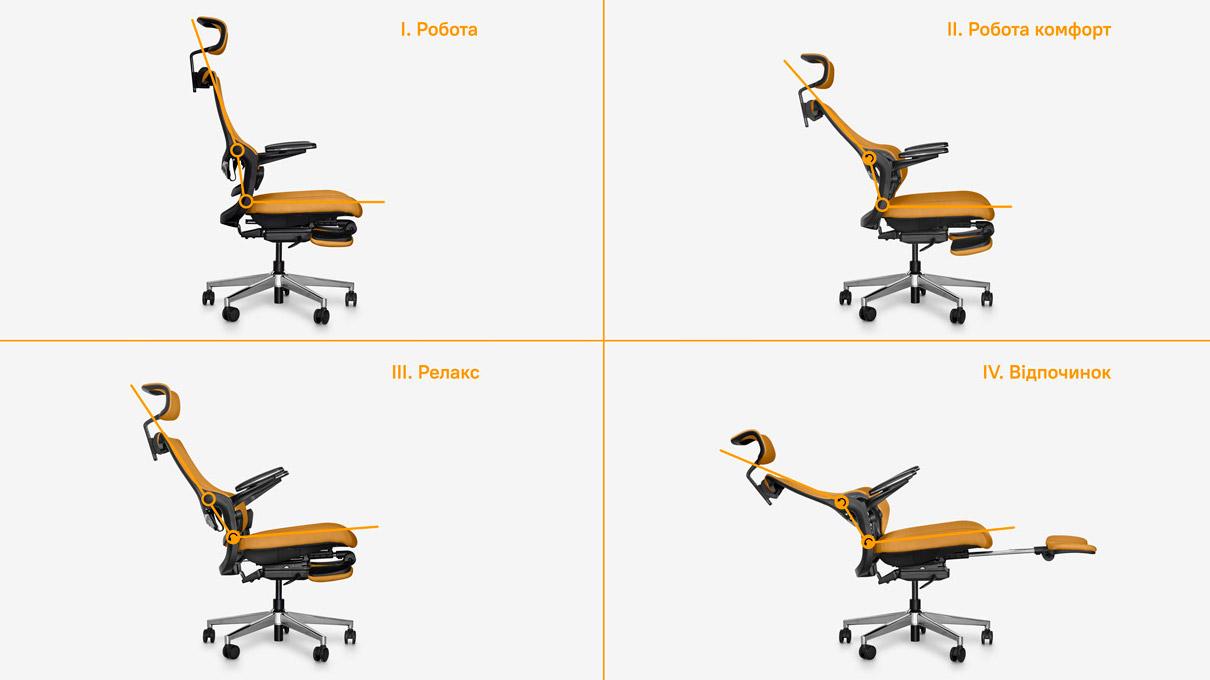 Можливість налаштування рівня опори під індивідуальні потреби користувача забезпечує здорове положення спини та комфорт на весь день.