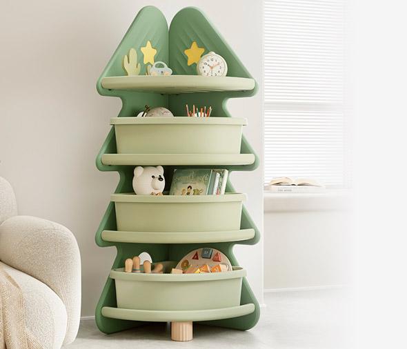 Компактный и вместительный угловой стеллаж со съёмными органайзерами поможет эффективно сэкономить пространство в детской комнате и организовать хранение вещей и игрушек разными способами